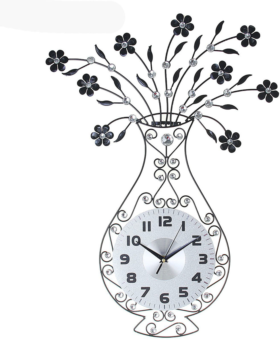 Настенные часы "Ваза с цветами", 725939, серый металлик