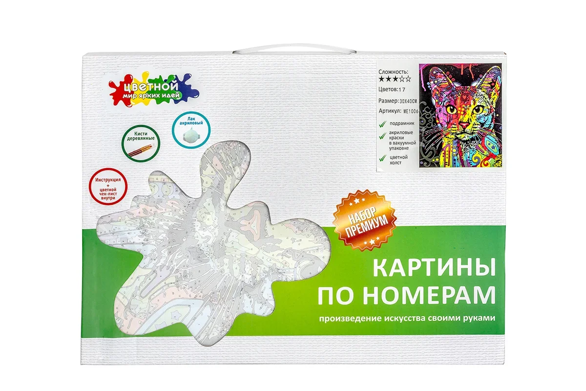 - Комплектация холст на подрамнике; набор акриловых красок; набор кистей; крепеж; контрольный лист; инструкция
