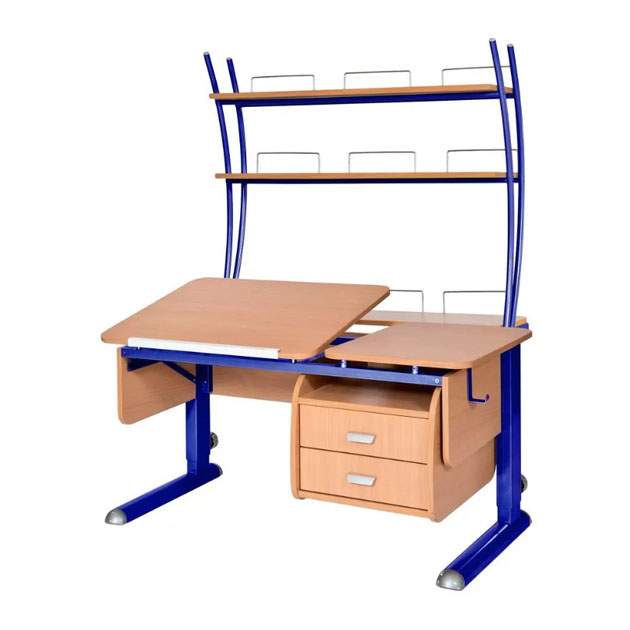 - Модель ТВИН-2 с надстройкой и тумбой ЛДСП Бук Синий в комплекте Подвесная тумба