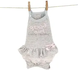 Комбинезон для собачки выполнен из мягкого эластичного трикотажа в полоску. Комбинезон на лямочках сверху и снизу, что позволяет легко надеть его на собачку, не стесняет движений и замечательно подходит в летний день. На талии юбочка в два ряда, первый выполнен в цвет костюма и расшит стразами Swarovski, сбоку маленький шелковый бантик с камушком по серединке, нижний ряд выполнен из кружев.