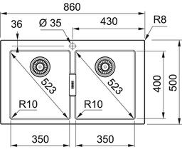 • Размеры рабочей поверхности 860x500 мм / угловой радиус закругления: 8 мм /