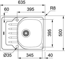 - Размеры врезного отверстия (накладная) 615x480 мм