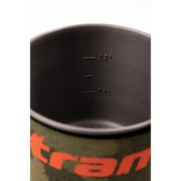 - казанок має зручну складну руку з надійною фіксацією і обшитий термочохли з неопрена, який перешкоджає швидкому охолодженню їжі або окропу, і дозволяє утримувати або переносити казанок за корпус без ризику обпектися, кришка казанка має отвір для відведення надлишкового тиску і зливу рідини;