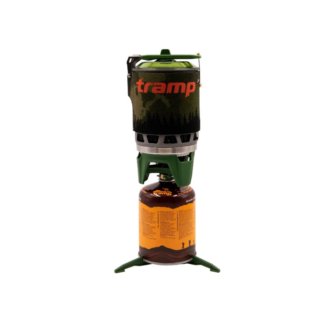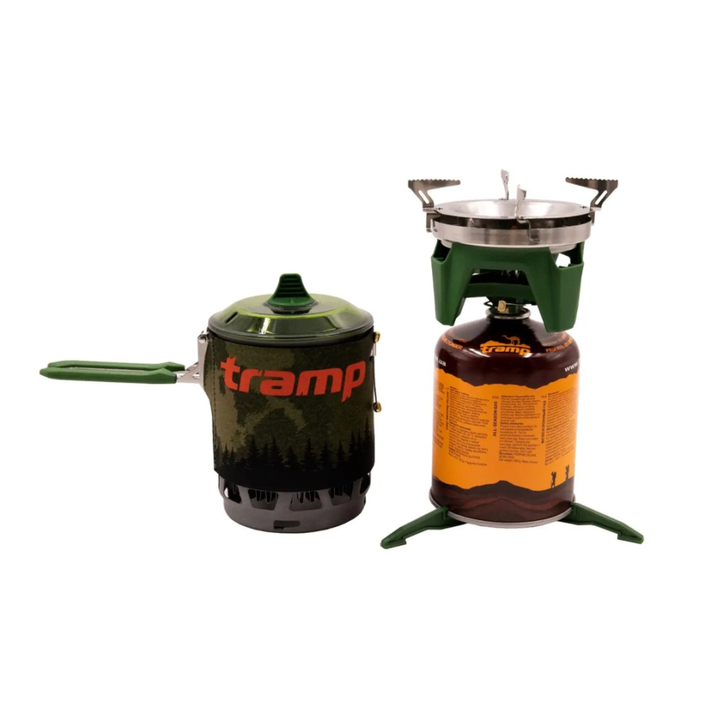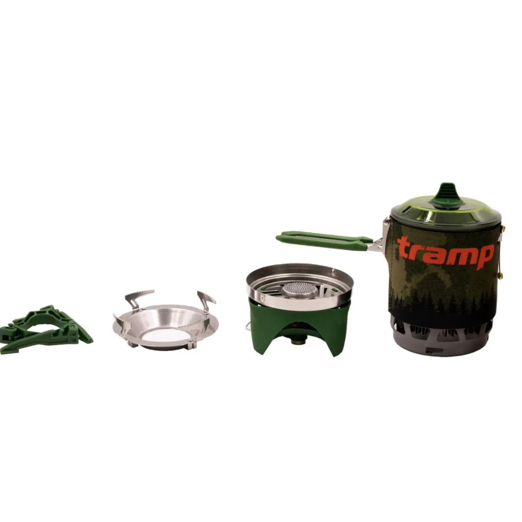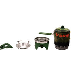 Інтегрована система приготування їжі Tramp TRG-115 складається з казанка на 1 л у неопреновому чохлі з вбудованим у вітрозахисний екран радіатором — теплообмінником і під'єднуваного до нього газового пальника, а також підставки під газові балони й таганка для використання іншого посуду в режимі звичайного пальника.