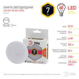 Лампа светодиодная ЭРА GX53 7W 2700K матовая LED G... LED GX-7W-827-GX53