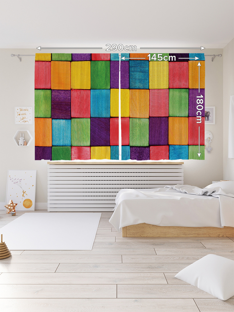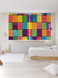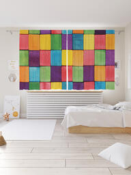 Шторы с фотопечатью "Радужная плитка" из сатена, 145х180 см