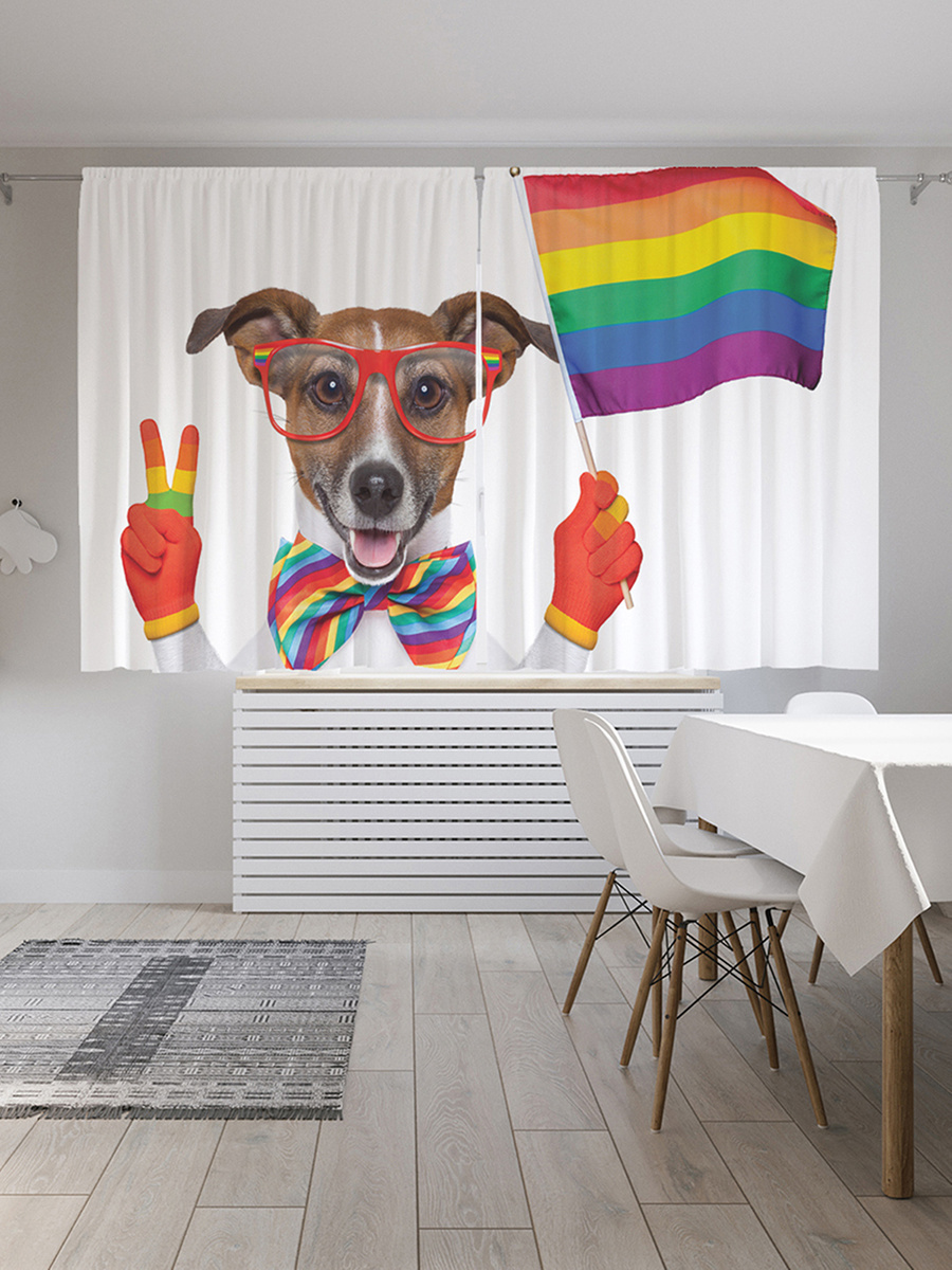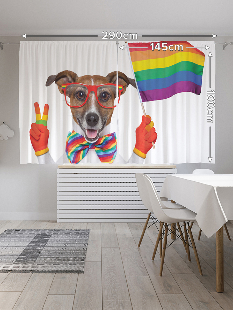 Шторы с фотопечатью "Позитивный пес" из сатена, 145х180 см