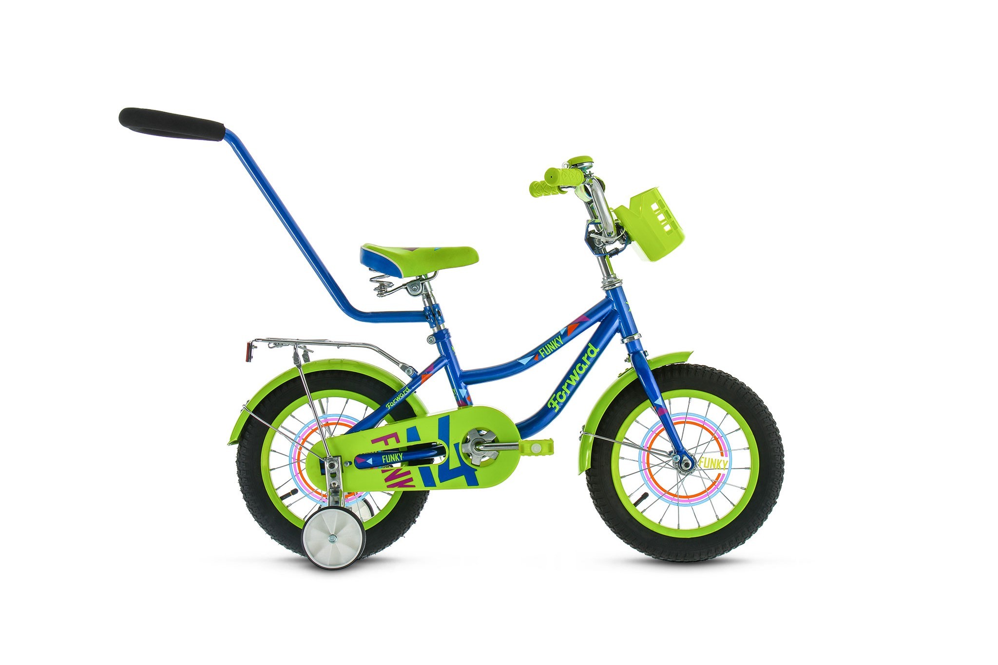 - Дополнительно Полноразмерные стальные крашеные крылья, стальной с зажимом крашеный багажник, корзина, родительская ручка, поддерживающие колеса, звонок