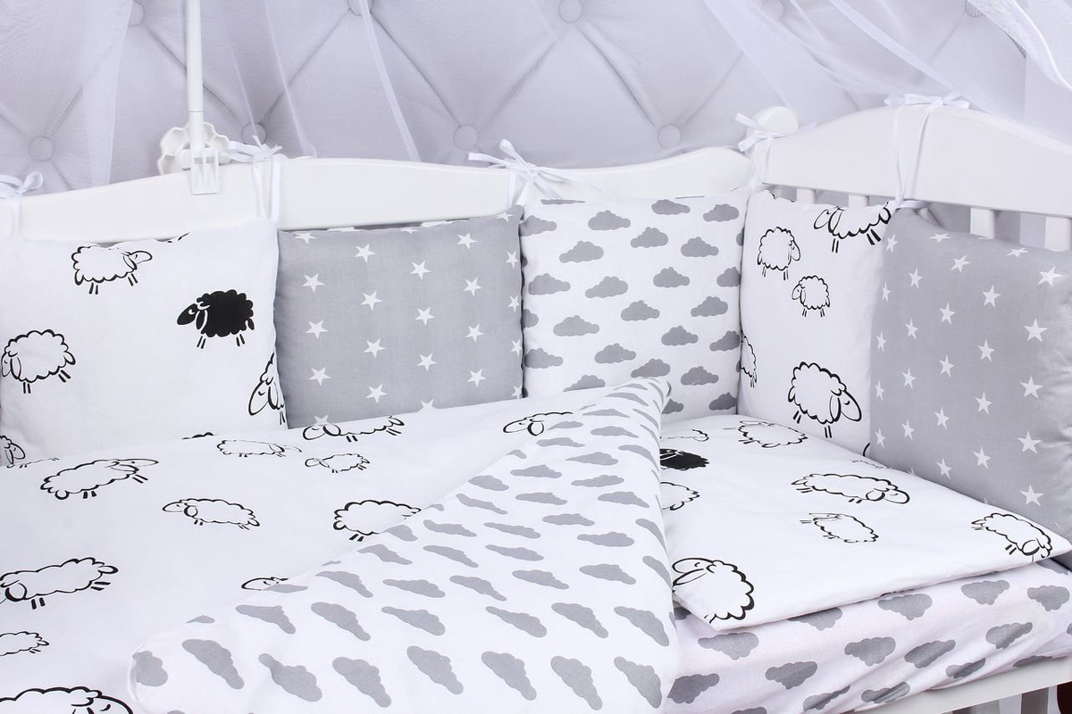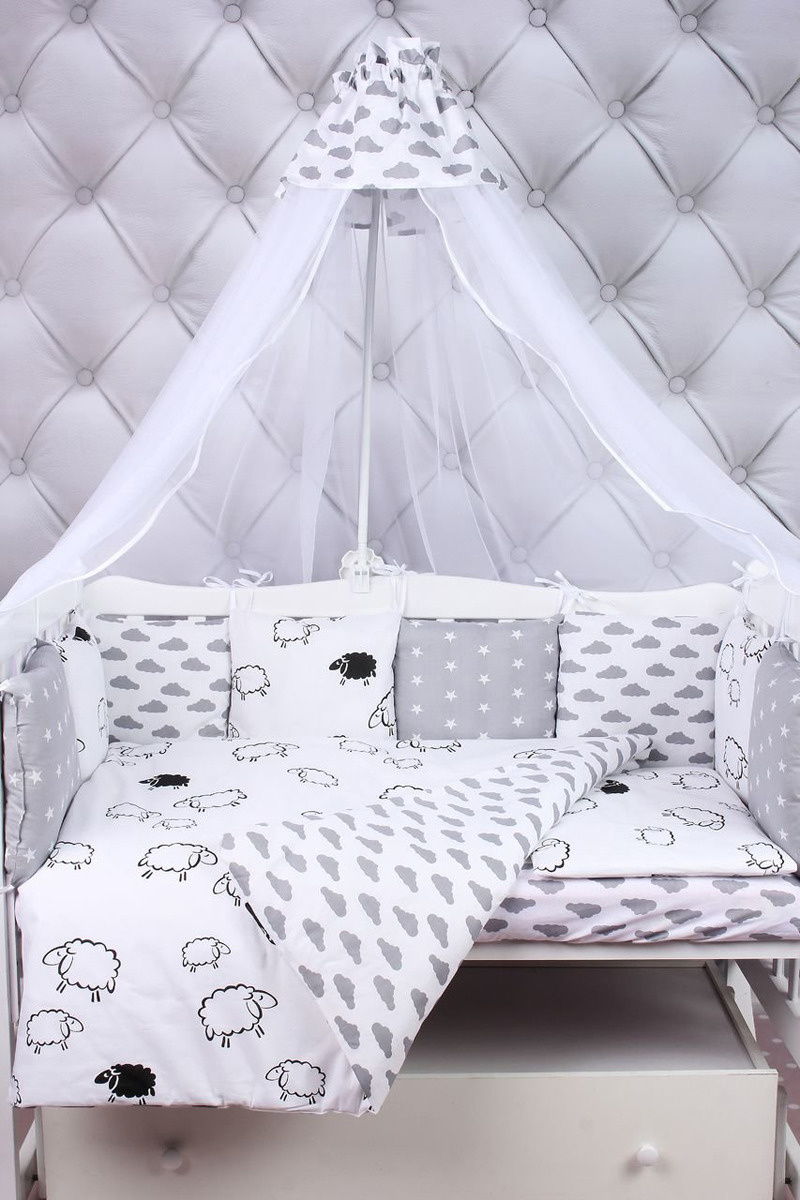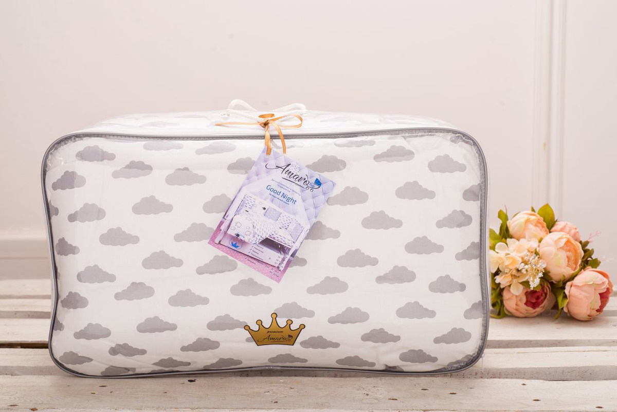 Комплект белья в кроватку AmaroBaby Good Night Premium, белый, серый, поплин, бязь, 19 предметов
