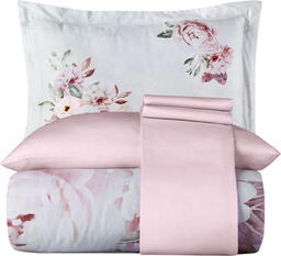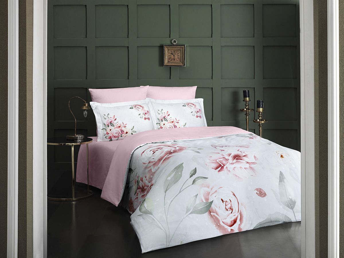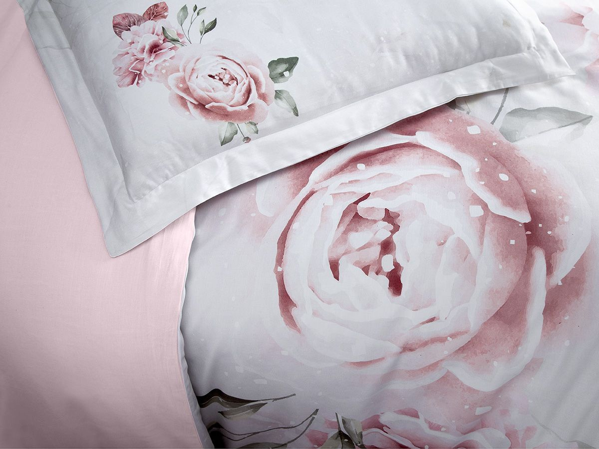 Комплект постельного белья Karna Exclusive Mona Roza, 3337, розовый, слоновая кость, евро, наволочки 50x70, 70x70