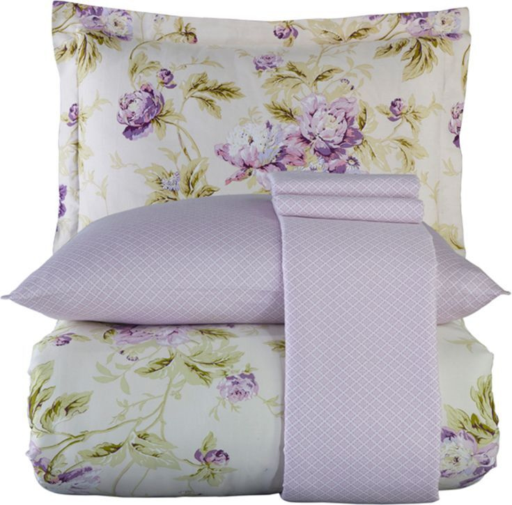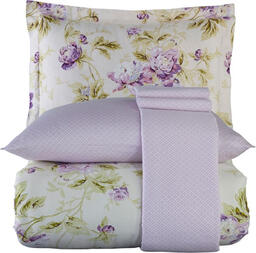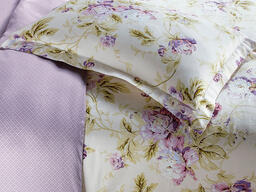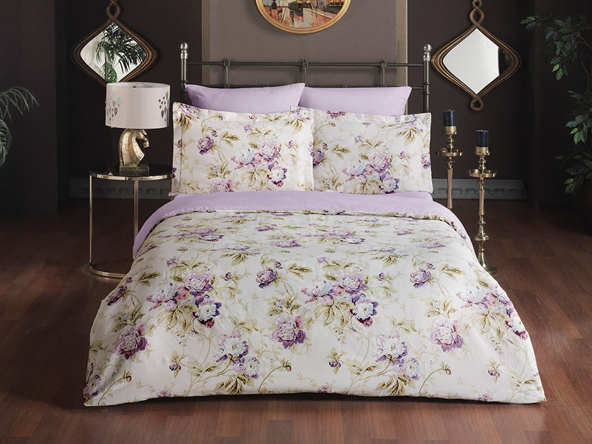 Комплект постельного белья Karna Exclusive Lili Marlen, 3327, сиреневый, слоновая кость, семейный, наволочки 50x70, 70x70