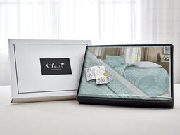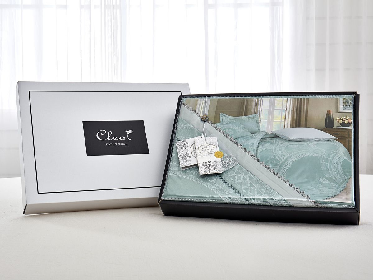 Комплект постельного белья Cleo Royal Jacquard, светло-зеленый, серый, голубой, семейный, наволочки 50х70 и 70х70
