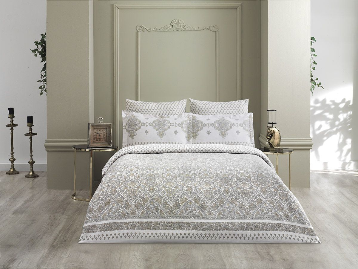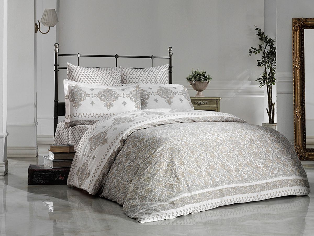 Комплект постельного белья Karna Exclusive Petra, 3345, бежевый, слоновая кость, семейный, наволочки 50x70, 70x70