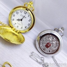 Карманные часы на цепочке Герб Серебро / Белый циферблат