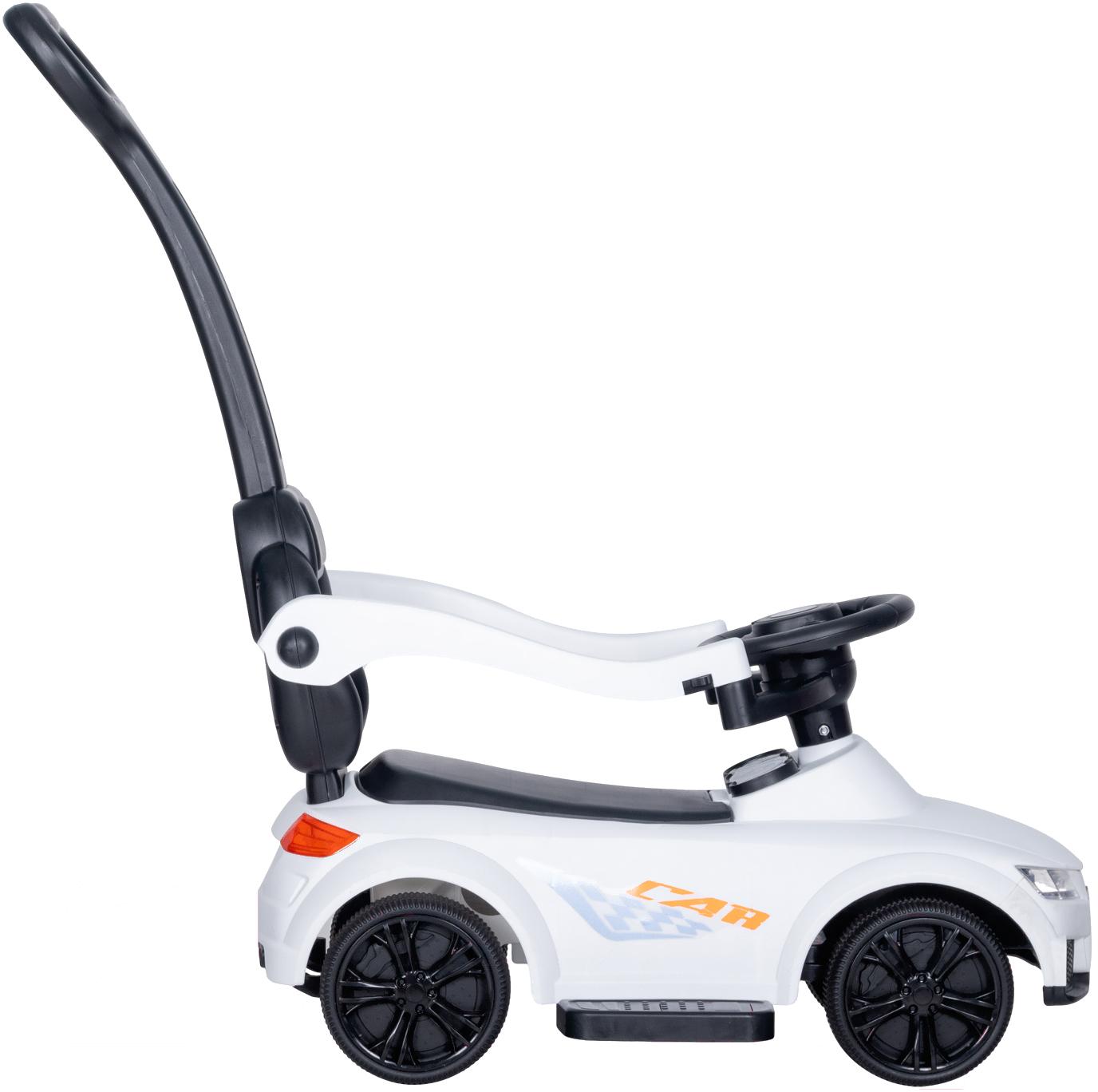 - Дополнительные элементы руль, подножка, ограждение, высокая спинка, ручка для родителей, багажник