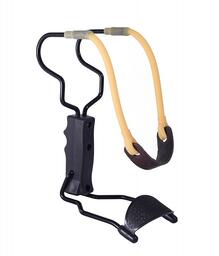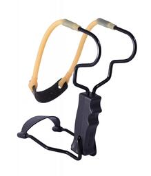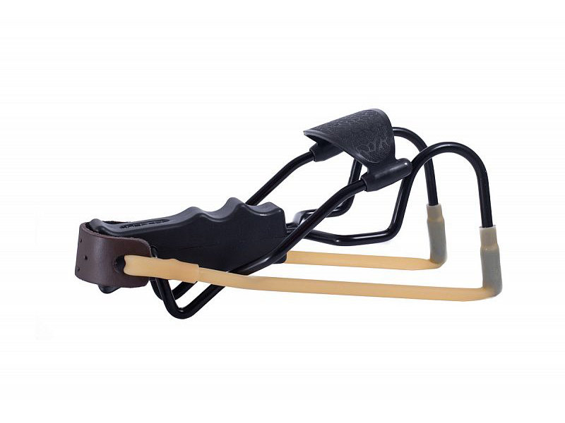 Классическая рогатка черного цвета с кистевым упором и увеличенной верхней частью (рогатиной). Точность данной рогатки выше чем у рогаток без упора, за счет того, что рогаткая фиксируется на руке. Увеличенная верхняя часть (рогатина) позволяет повысить мощность и дальность выстрела. Вес рогатки - 300 грамм, длина - 220 мм, ширина - 92 мм. Удобная и надежная рукоятка из пластика. Прочная полая круглая резинка с кожанкой диаметром 9 мм (толщина стенки 2 мм). Упор металлический, складывающийся. Внимание! Не является оружием. Перед использованием необходимо ознакомиться с инструкцией. Несоблюдение правил безопасности может привести к травмам и иметь тяжелые последствия.