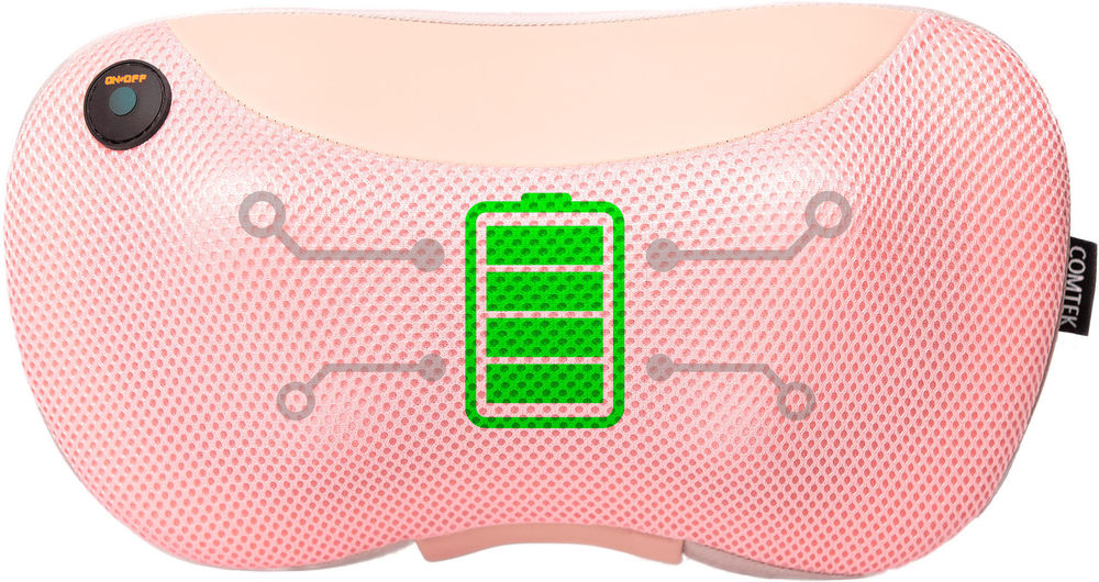 Роликовый массаж. Массаж шиацу. Разминающий массаж. Подогрев. Питание: аккумулятор. Размеры: 34x19x13 см.