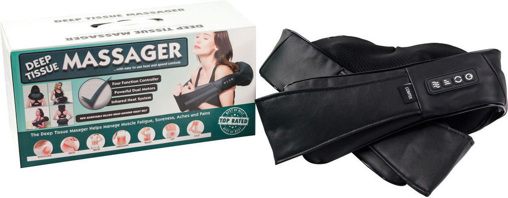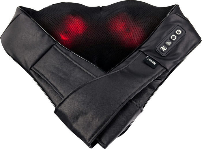 Роликовый массаж. массаж шиацу. Растирающий массаж. Разминающий массаж. Комбинированный массаж. Подогрев. Питание: аккумулятор/прикуриватель. Размеры: 24.5x40x16 см.