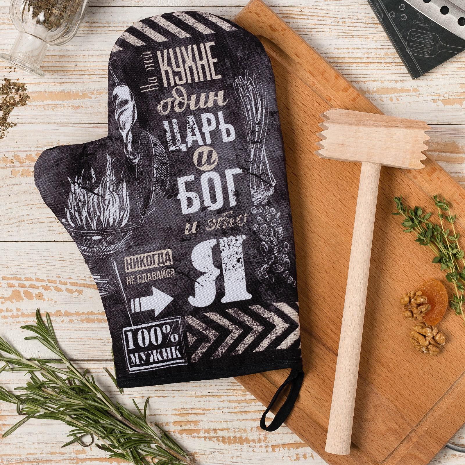 Кухонныйнабор «Царь на кухне», варежка-прихватка 20х28см, молоток деревян. 4654918