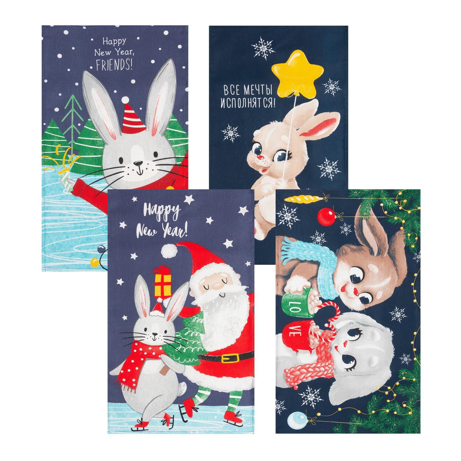 Набор полотенец кух. Доляна Happy friends 35х60 см - 4 шт, 100% хл 9083189
