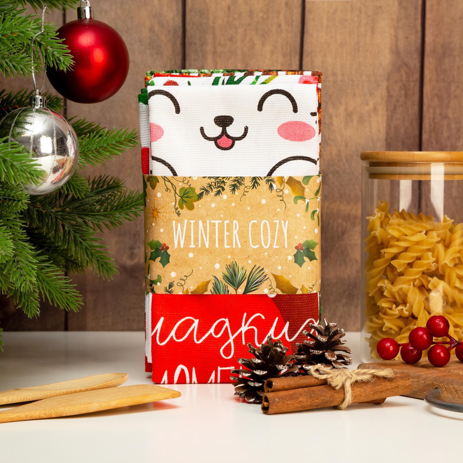 Набор кухонных полотенец Доляна «Новогоднее настроение» 35х60см-4шт, 100% хл 7107741