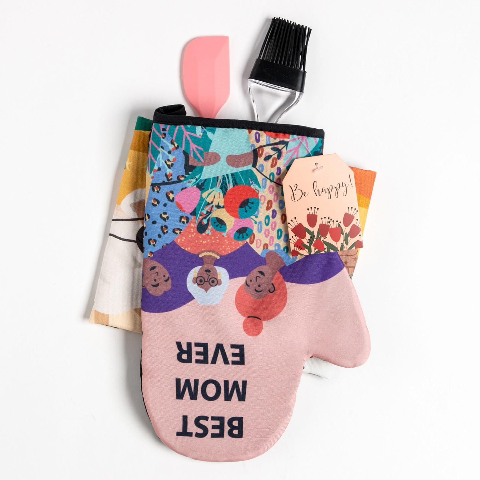 Набор подарочный Best MOM: полотенце, варежка-прихватка, кисть, лопатка 7635062