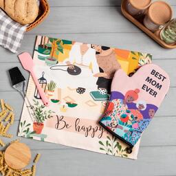 • Составляющие набора Варежка-прихватка, Кулинарная кисть, Кухонная лопатка, Полотенце