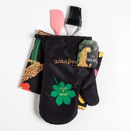 • Составляющие набора Варежка-прихватка, Кулинарная кисть, Кухонная лопатка, Полотенце