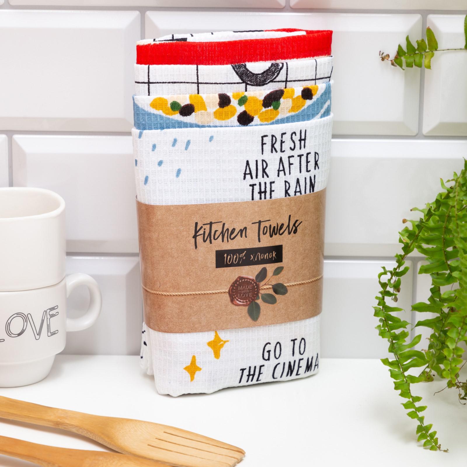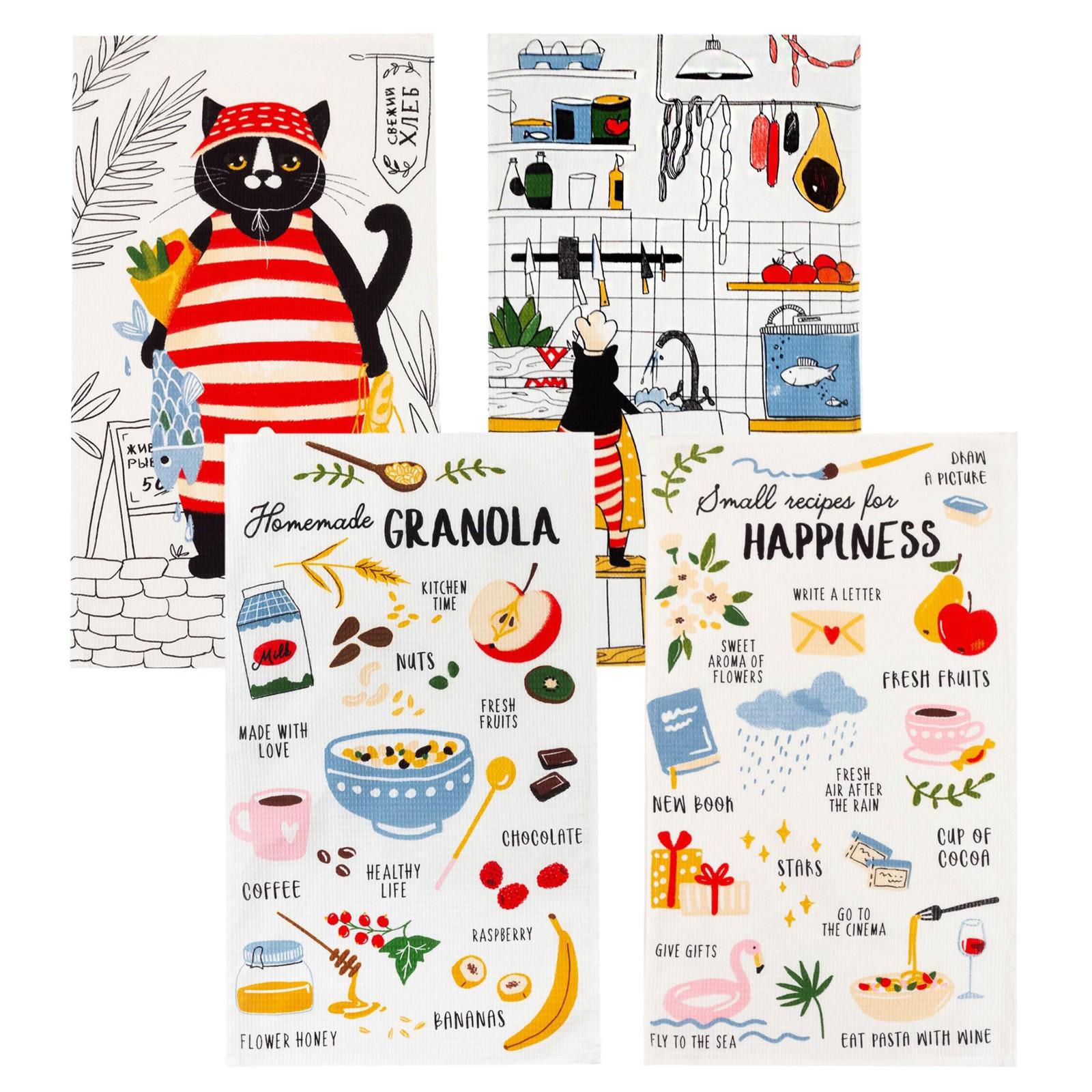 Набор кухонных полотенец Доляна Happiness, 35х60см-4шт, 100% хл 5423147