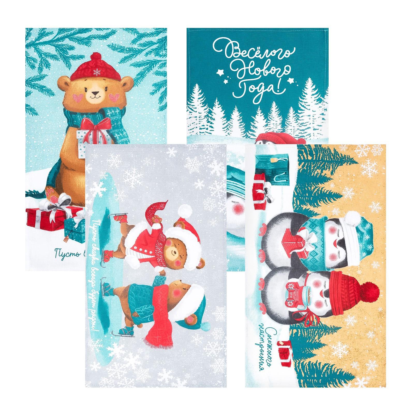 Набор кухонных полотенец Доляна «Веселого Нового года» 35х60см-4шт, 100% хл 6990934