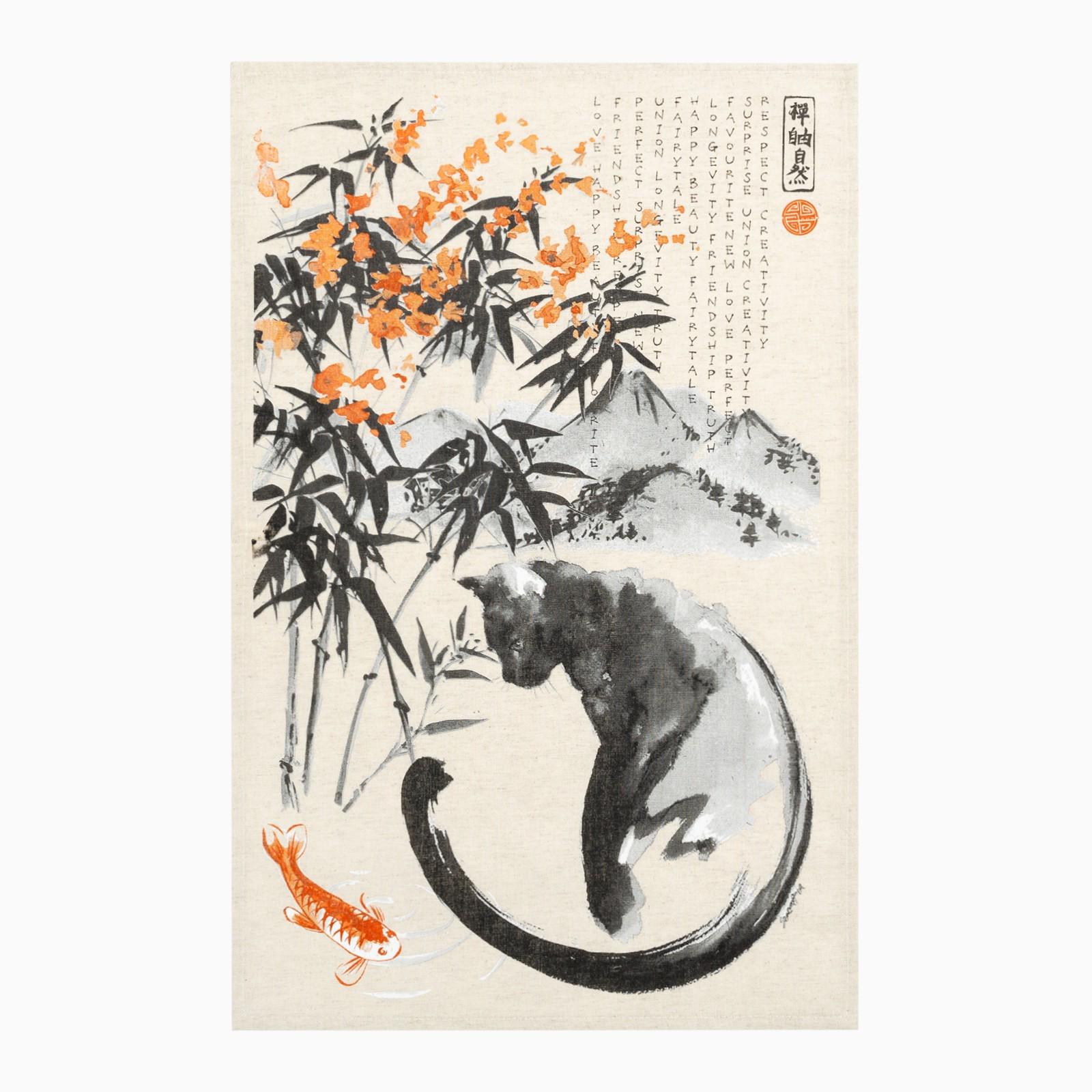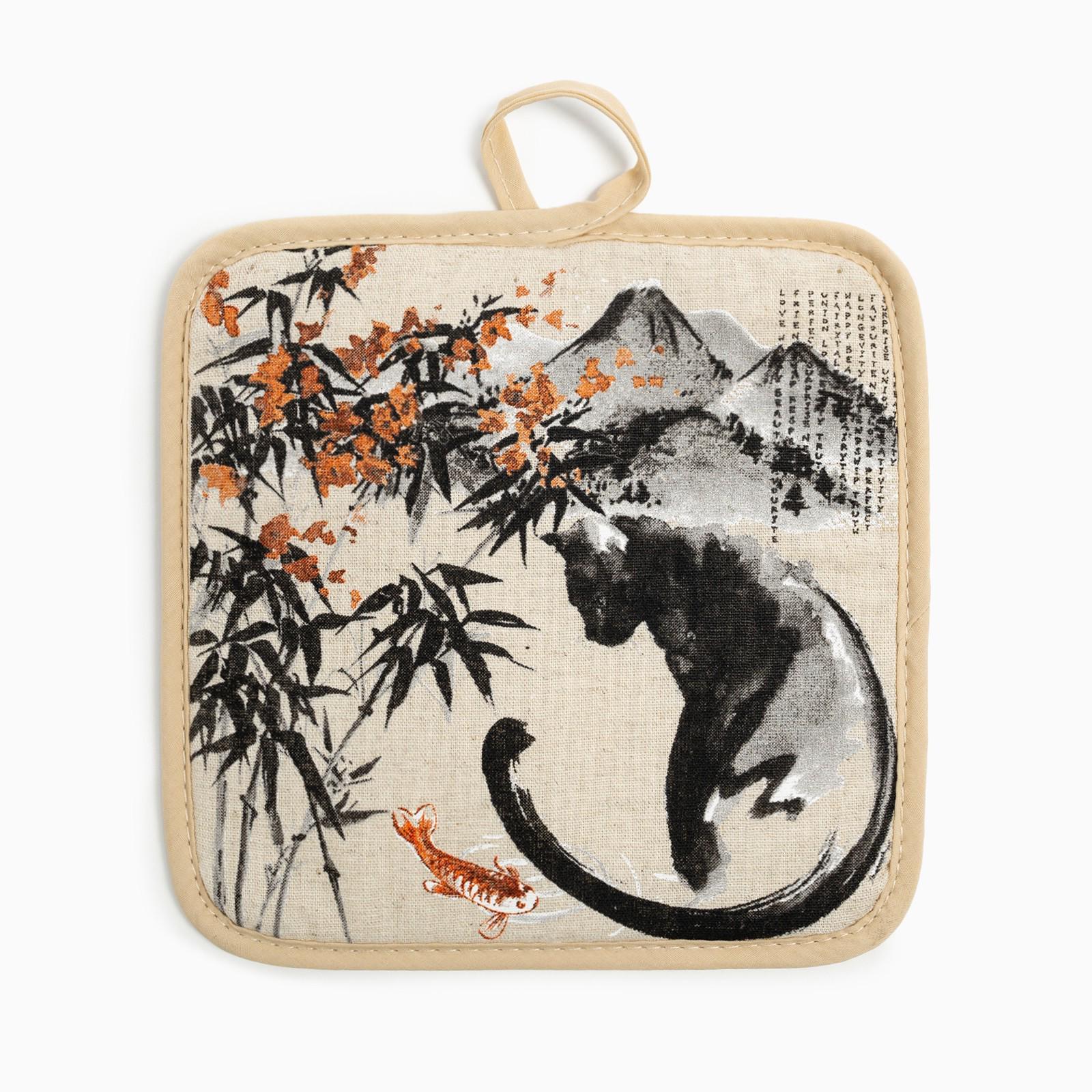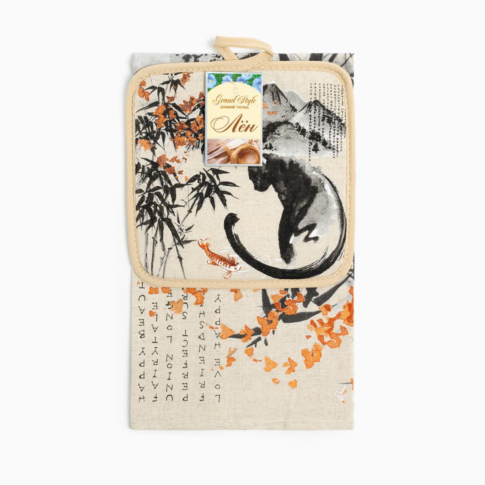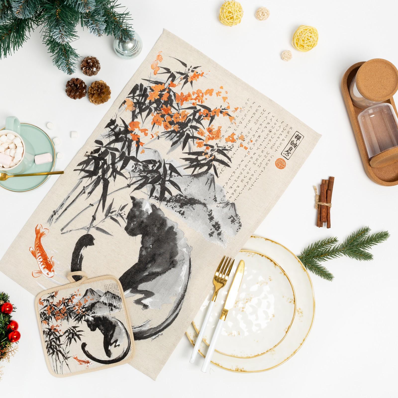 Кухонный набор «Кот в Японии» (полотенце 39х60+прихватка 18х18) состав: 50% лён,50% хлопок, 160г/м² 9038662