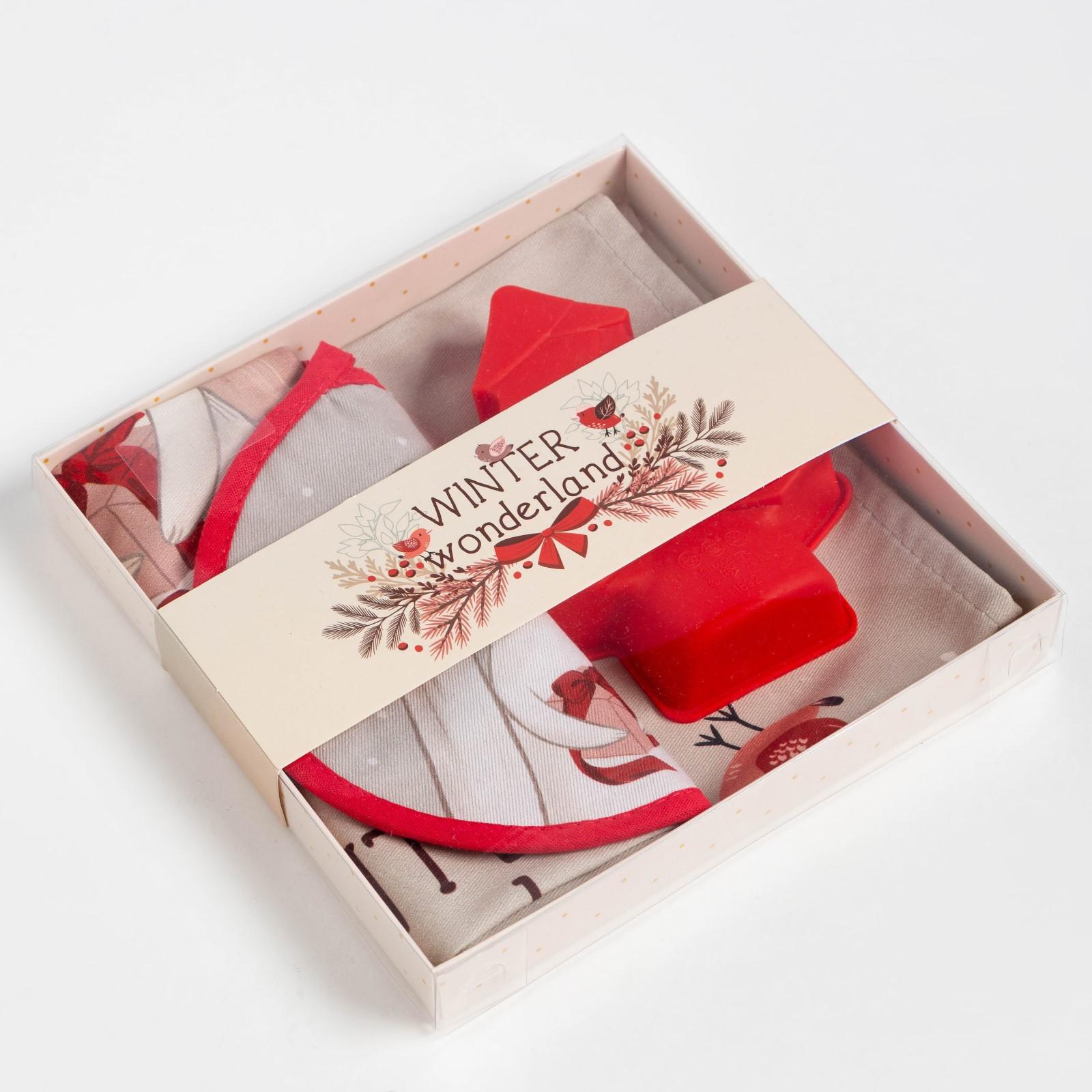 Набор подарочный Этель Wonderland МИКС: кух. полотенце, прихватка, силикон. форма 7895712