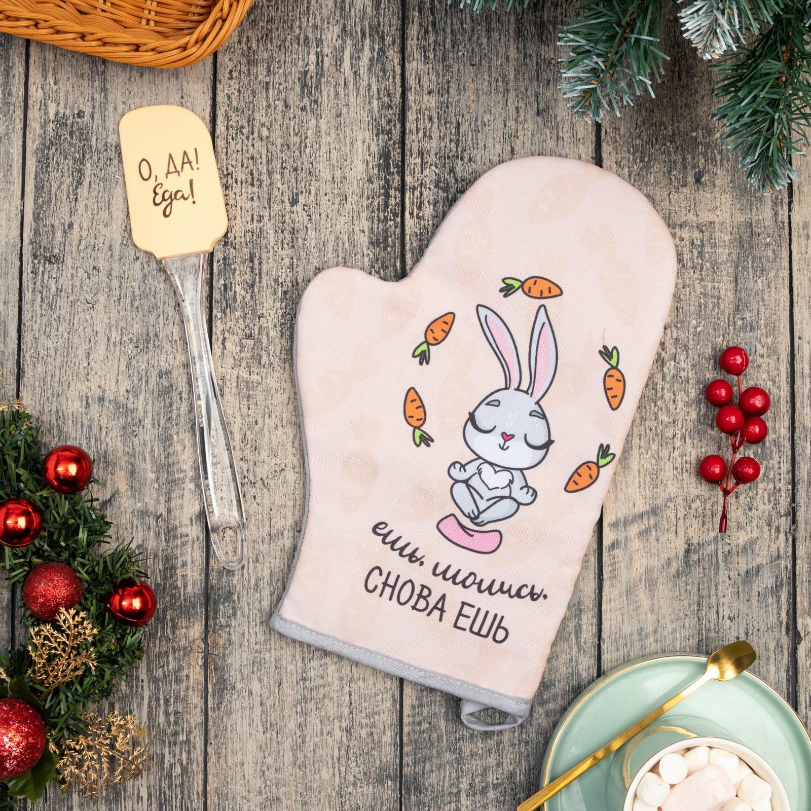 Набор подарочный Доляна "Ешь, молись" МИКС: варежка-прихватка, лопатка силикон 7895826