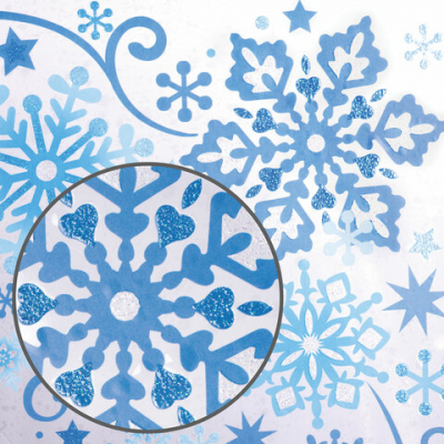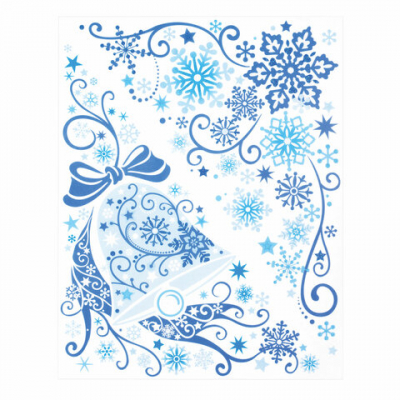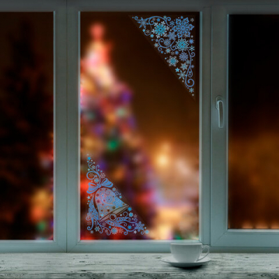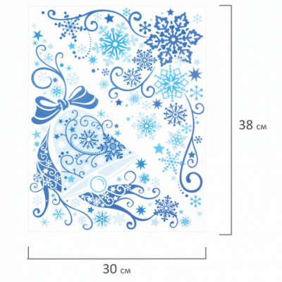 Изделие с зимним тематическим изображением представляет собой наклейку на окно/стекло, изготовленную из поливинилхлорида (ПВХ). Наклейка размером 30x38 см декорирована голубым и белым глиттером. Украшение предназначено для декорирования окон, зеркал, стекол и других ламинированных глянцевых поверхностей. Не оставляет клеевых следов и предназначено для многократного использования. Крепится к поверхности посредством статического эффекта. Украшение на белой картонной подложке упаковано в прозрачный полипропиленовый пакет на картонном подвесе.