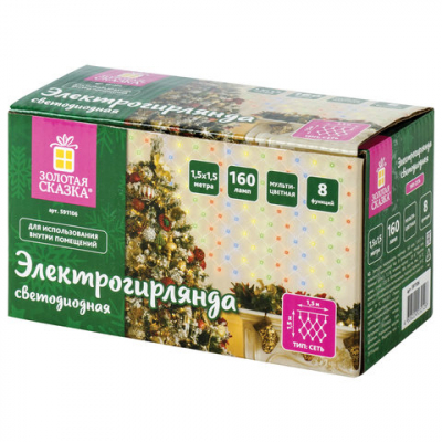 Электрогирлянда светодиодная ЗОЛОТАЯ СКАЗКА "Сеть", 160 ламп, 1,5х1,5 м, многоцветная, контроллер, 591106