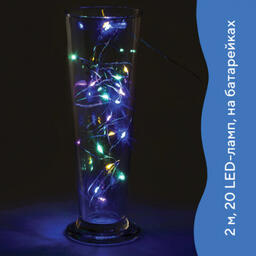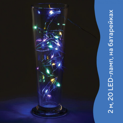 Электрогирлянда светодиодная ЗОЛОТАЯ СКАЗКА "Роса", 20 ламп, 2 м, многоцветная, на батарейках, 591101