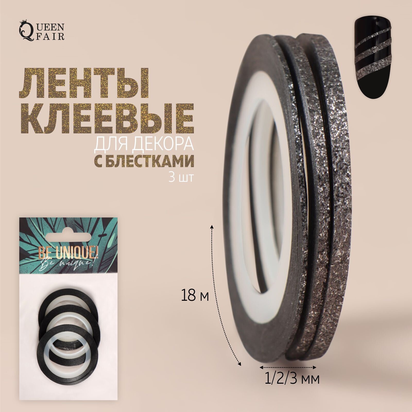 Ленты клеевые для декора «BE UNUQUE», с блёстками, 3 шт, 1/2/3 мм, 18 м, цвет чёрный 6247950
