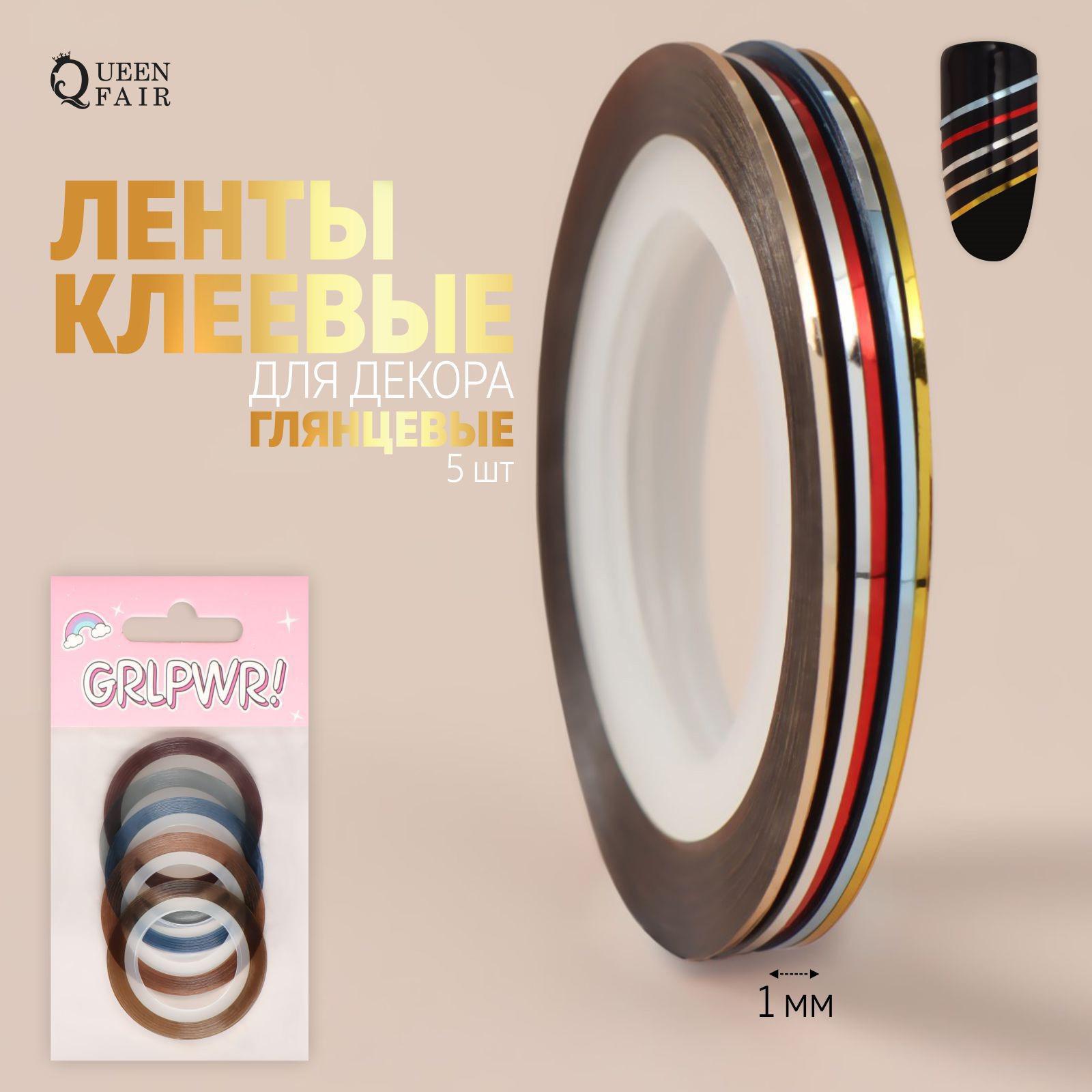 Ленты клеевые для декора «GRL PWR», глянцевые, 5 шт, 7,5 м, 1 мм, разноцветные 6247941