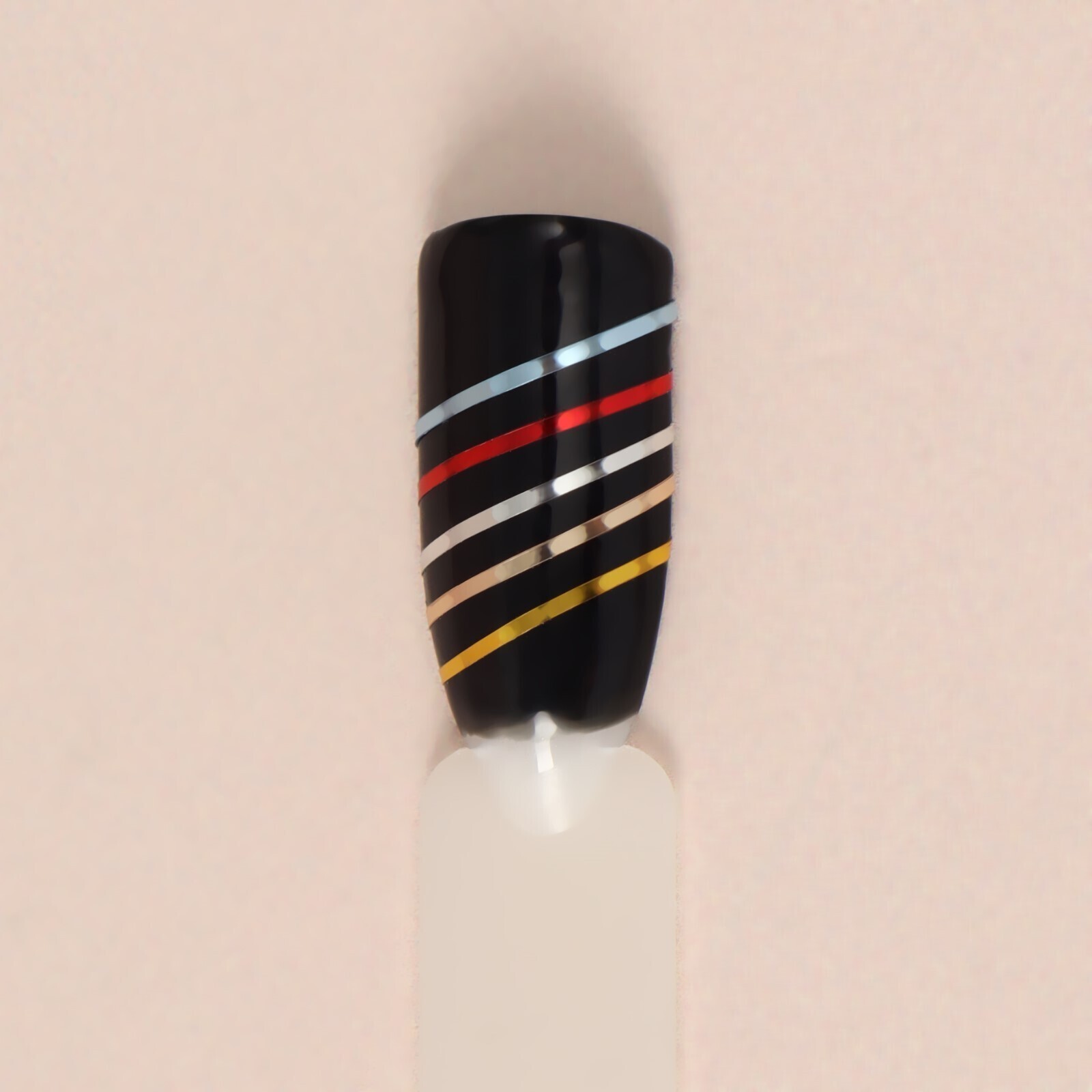Лента представляет собой тонкую самоклеящуюся полоску для дизайна ногтей. Её можно использовать на лаковом, гель-лаковом или любом другом искусственном покрытии.