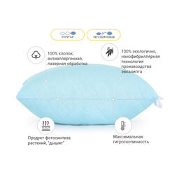 А високотехнологічна лазерна обробка надає бавовняній тканині не тільки естетичний вигляд, але й продовжує термін експлуатації самого виробу. Тканина зі 100% високоякісної єгипетської бавовни, досить щільна та довговічна. Завдяки бавовні дає змогу «дихати» виробу і не порушує природну мікроциркуляцію повітря в подушці, у такий спосіб ви не будете пітніти під час сну навіть дуже спекотного літа.