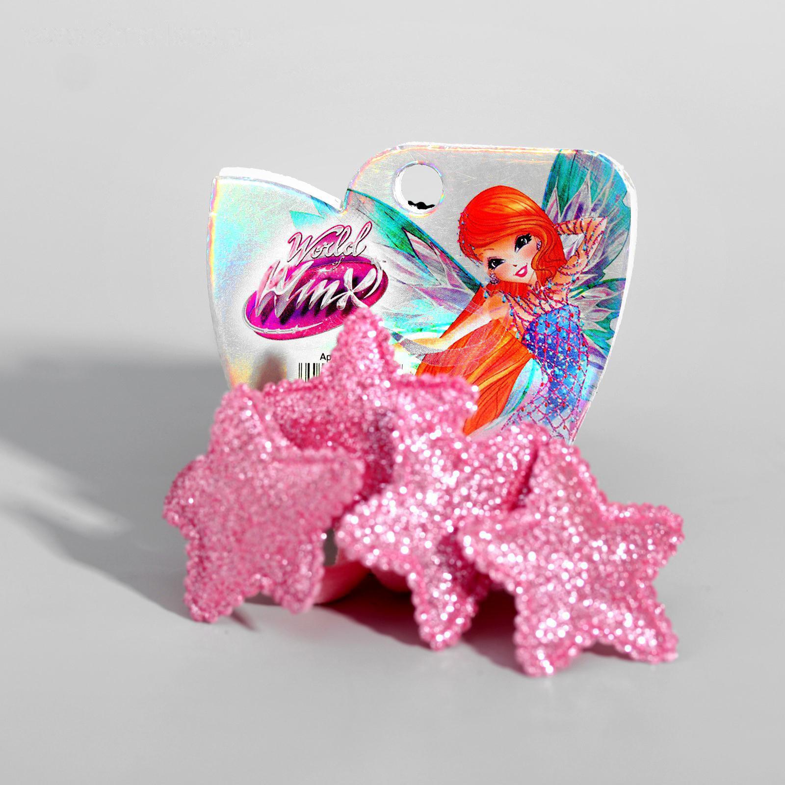 Набор резинок ВИНКС "Звёзды" розовые с блестками, 4 шт, 6х5 см 4675389
