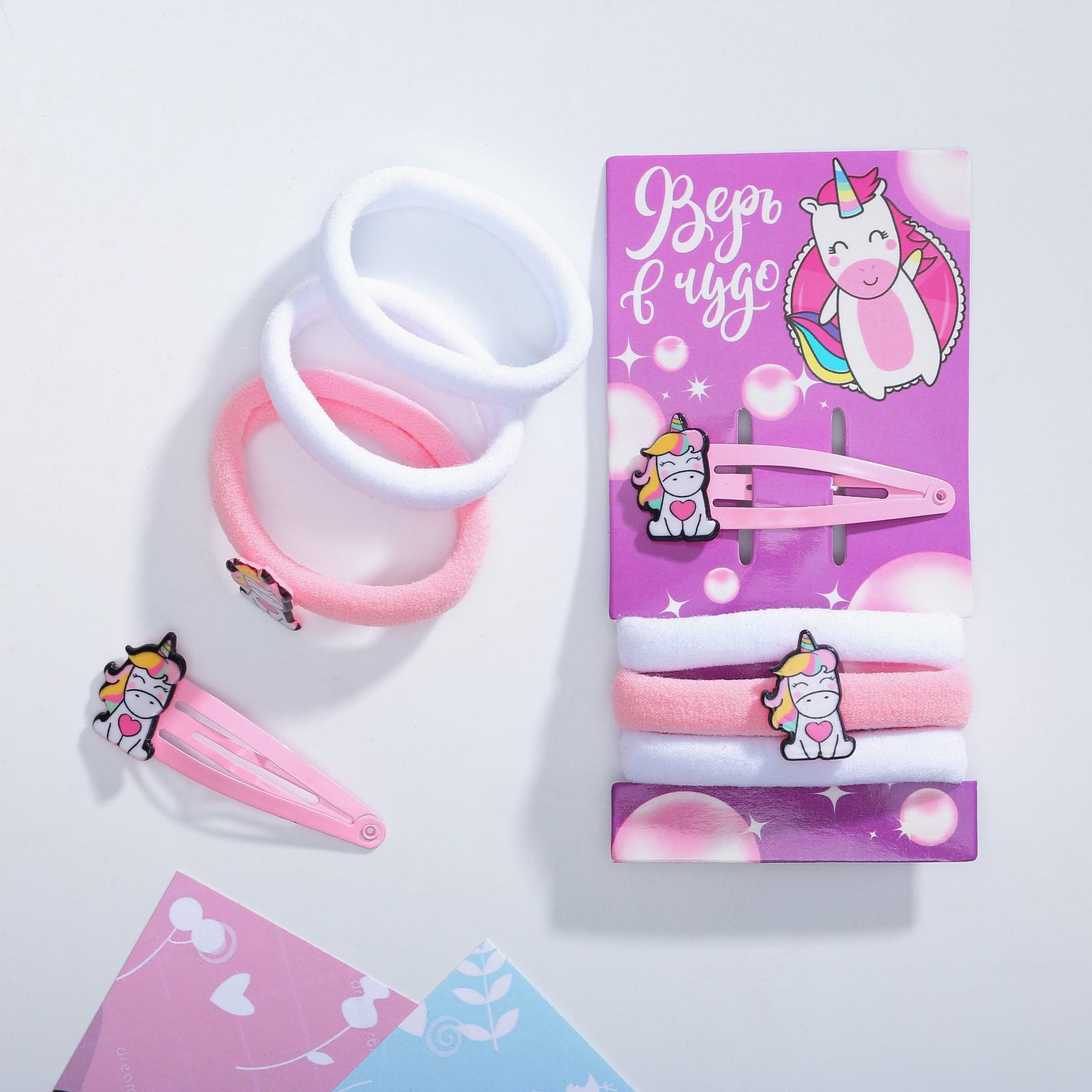 Резинки и заколка для волос "Верь в чудо", d= 3,5 см, набор 5392612