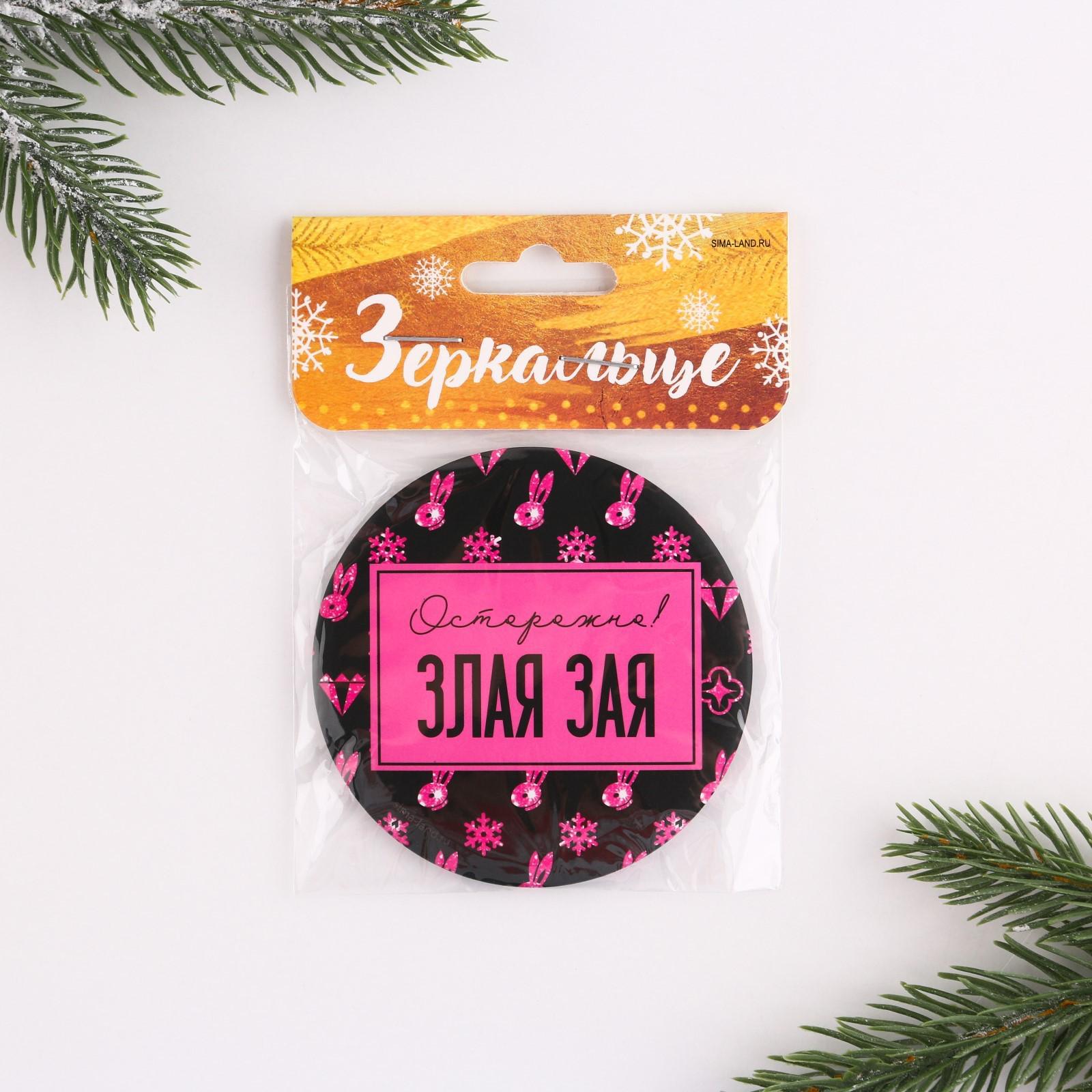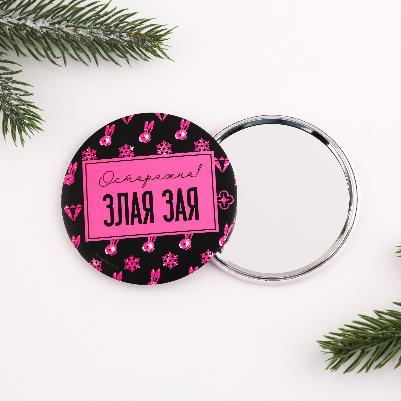 Зеркало карманное "Осторожно! Злая зая", диам.7 см 7826883