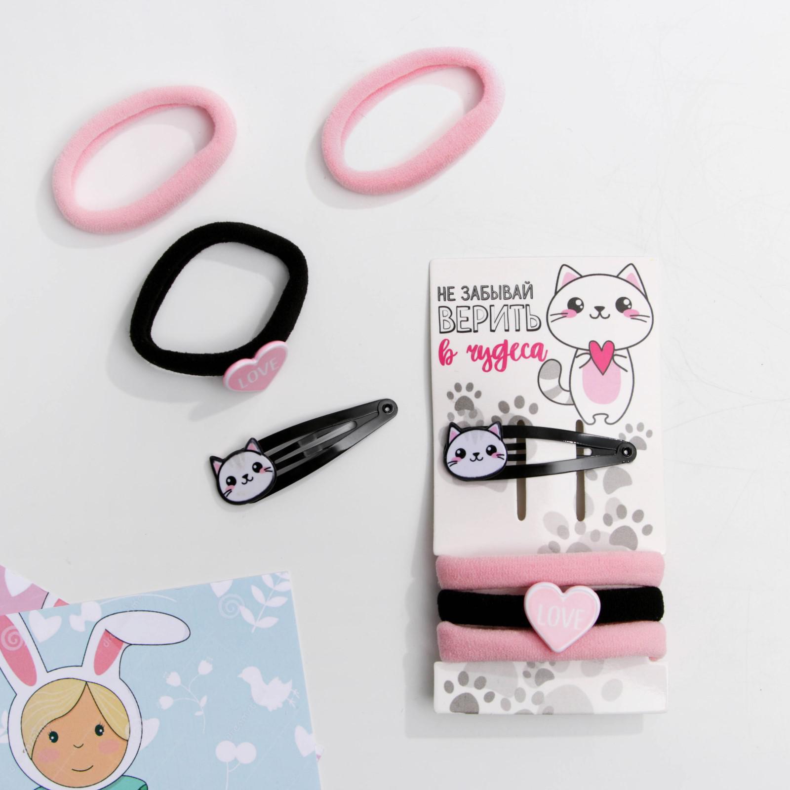 Резинки и заколка для волос «Не забывай верить в чудеса», d= 3,5 см, набор 5392614