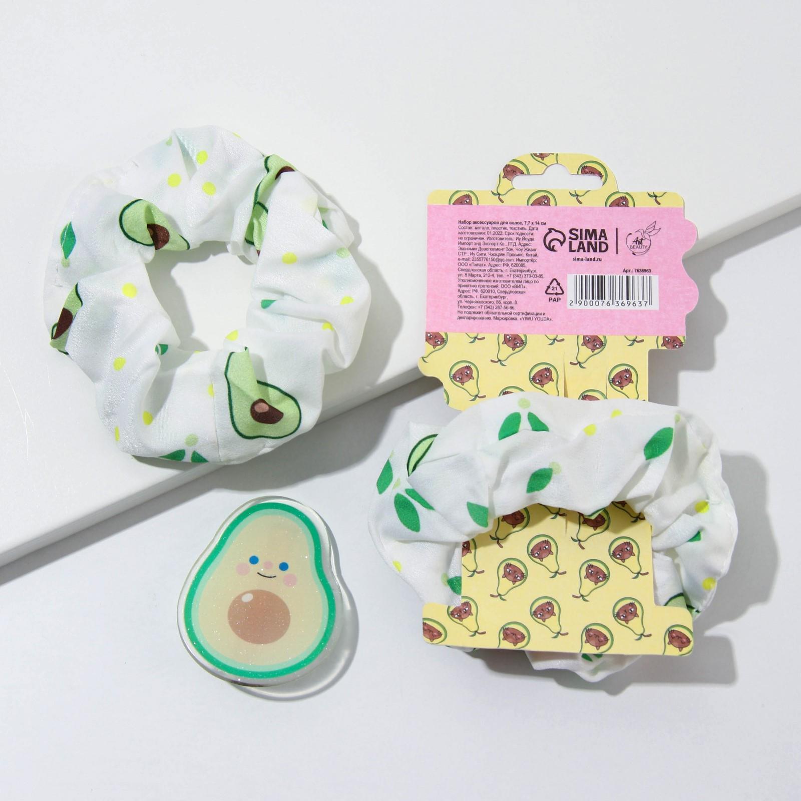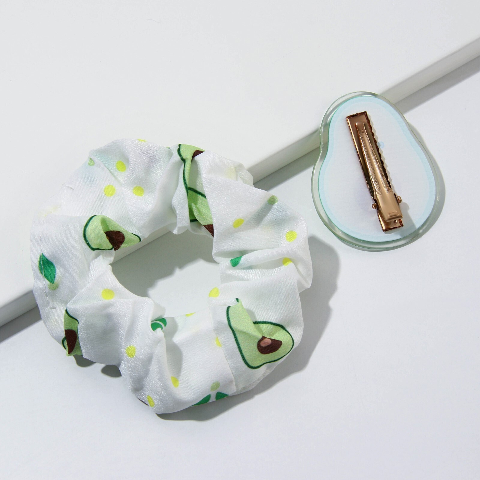 Стильный и красивый набор с заколкой и резинкой для волос - идеальный аксессуар для праздничной вечеринки или в качестве оригинального акцента в повседневном образе. Резинка и заколка клик-клак выглядят изысканно и оригинально. Особенно приятно будет носить его любителям авокадо. Надежное крепление на заколке отлично держит прическу. Резинка для волос исключает спутывание, повреждение, не цепляет волосы. Набор можно использовать по одному аксессуару, а также можно комбинировать - они прекрасно сочетаются друг с другом и помогут создать неповторимый образ.