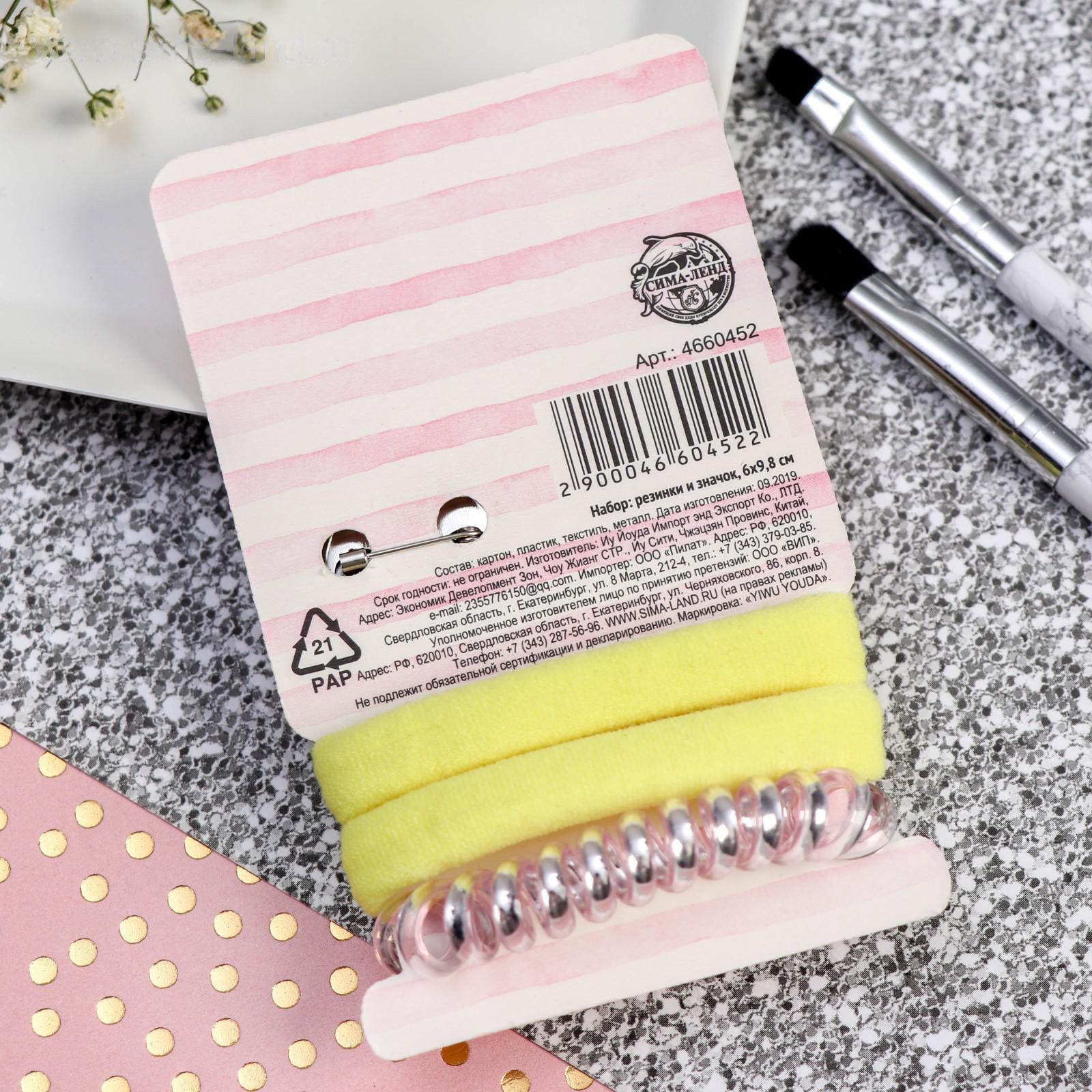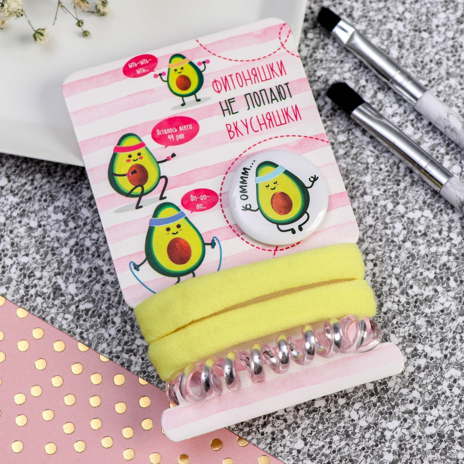 Резинки для волос (3 шт.) и значок "Авокадо", d(ткан.)= 3,5 см., d(пруж.)= 2 см. 4660452