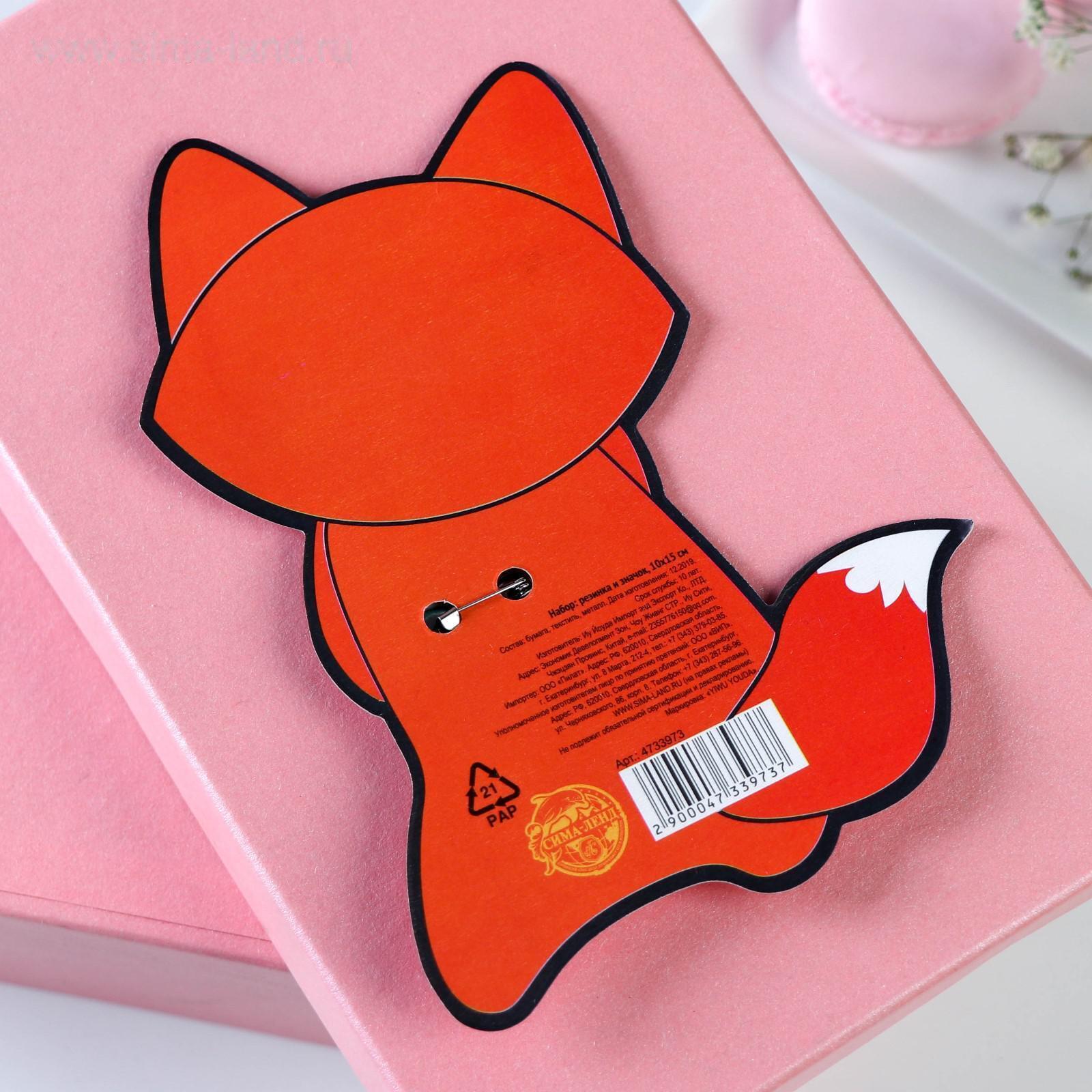 Резинка для волос и значок «Бархат», лиса, d= 9 см. (набор) 4733973