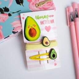 Заколка и резинка для волос «Авокадного настроения», d= 3,5 см 4775553