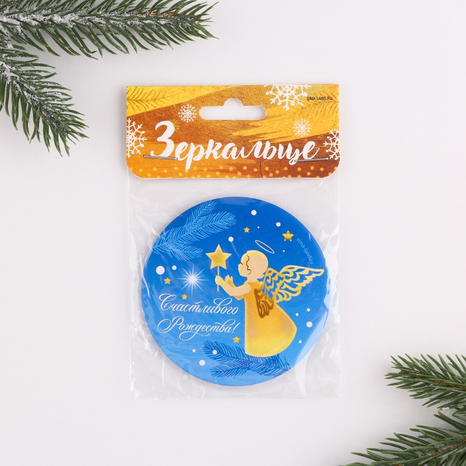 Зеркало карманное "Счастливого Рождества!", диам.7 см 7826892