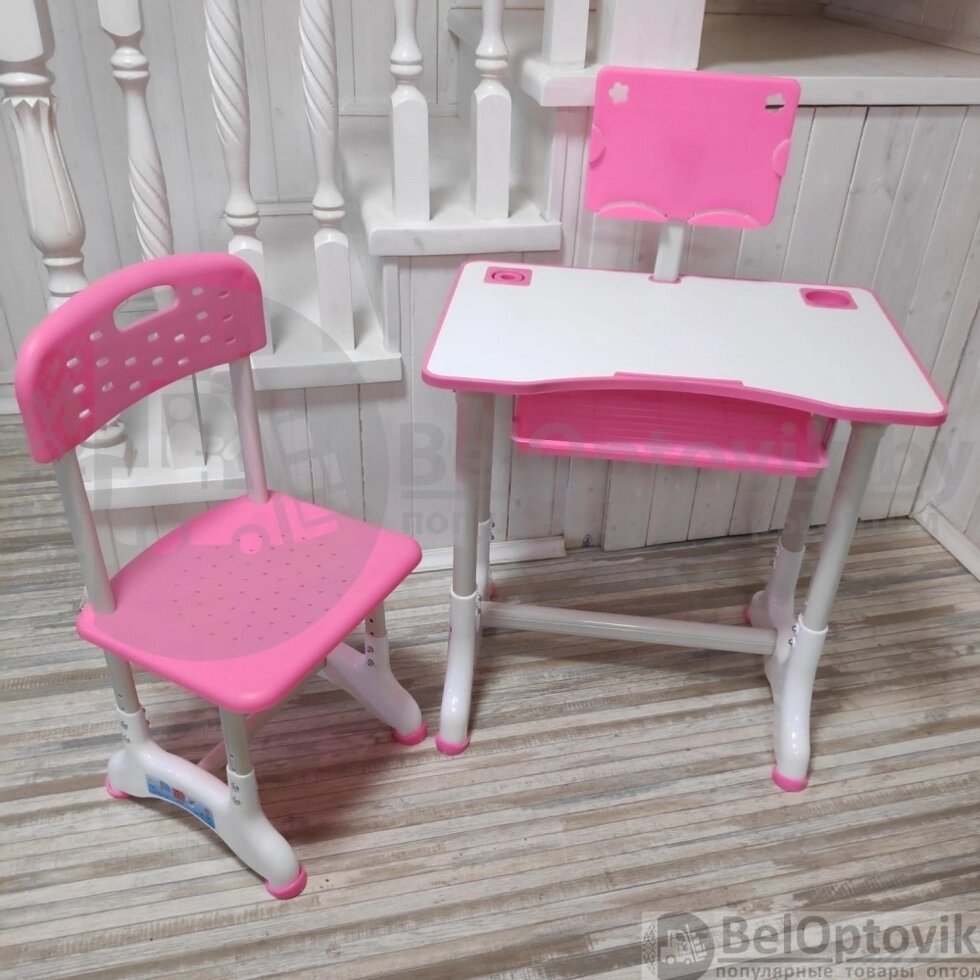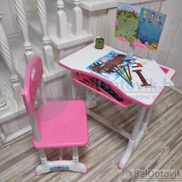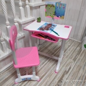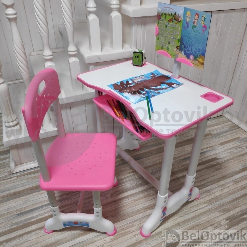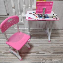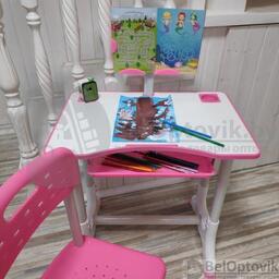УЦЕНКА Растущая парта (стол) и растущий стул для дошкольника (подставка для книг, полка для канцтоваров) Розовая